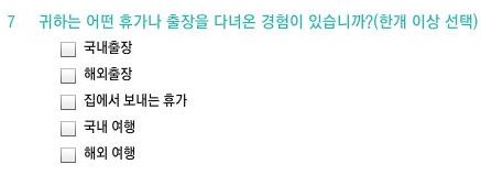 7. 귀하는 어떤 휴가나 출장을 다녀온 경험이 있습니까? (한 개 이상 선택)