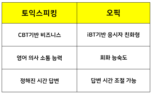 오픽과 토익스피킹. 어떤 시험을 선택해야 할지 몰라 고민하시는 분들이 너무 많은데 아래의 내용들을 참조해보세요.